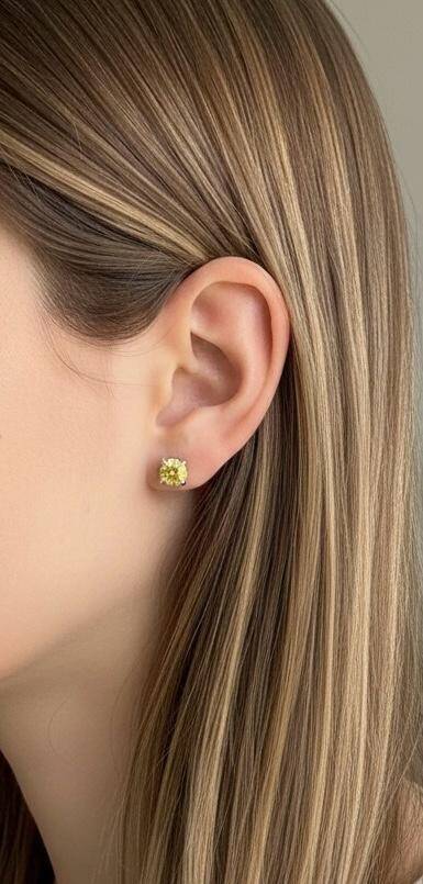 Mila Tek Taş Sarı Safir Küpe